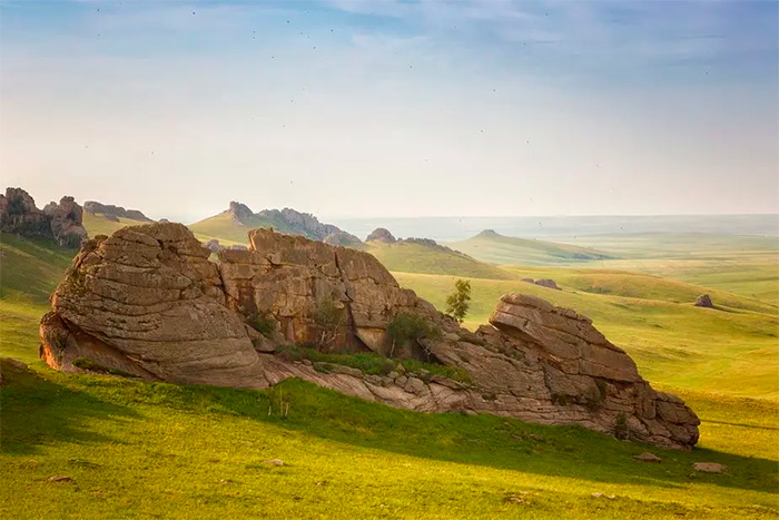 В фауне заповедника представлены типично степные животные, в том числе редкие (антилопа дзерен, дикий кот манул, даурский еж и другие).