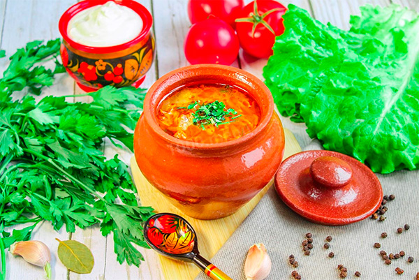 Например, в книге П. П. Александровой-Игнатьевой «Практические основы кулинарного искусства...» (1909) это настоящее русское блюдо уже следовало готовить с добавлением томата и различных ароматных кореньев.