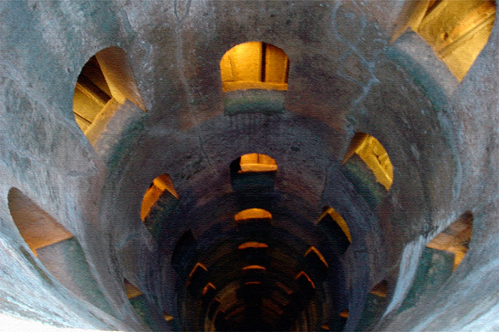 В 1527 году ту же идею применил итальянский архитектор Антонио да Сангалло Младший. По приказу папы Климента VII он начал строительство огромной водовозной башни — колодца Святого Патрика — в городе Орвието на случай его осады и лишения доступа к внешним источникам воды. Здесь доступ к воде на дне колодца обеспечивали два противоположных входа, которые вели на автономные винтовые лестницы: по одной повозки спускали за водой, а по другой доставляли её наверх. Освещение постройки было естественным: свет проникал внутрь через множество арочных окон в стенах башни.
