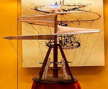 Воздушный винт Леонардо да Винчи считают прототипом современного несущего винта, а его самого — изобретателем геликоптера, или, как его называют в России, — вертолёта. Кстати, слово «геликоптер» родственно слову «геликоид». Появилось оно только в 1860-е годы, почти через четыре столетия после того, как был сделал этот рисунок.